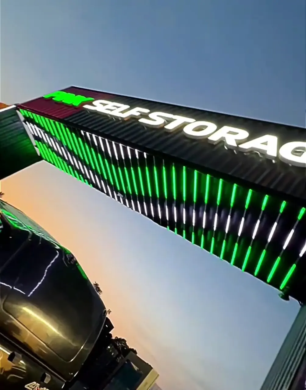 Harnessing Glediator software and advanced LED controllers, each LED functions like a single “pixel,” enabling dynamic visual effects, from subtle brand pulses to attention-grabbing alerts. Beyond aesthetics, this technology also improves roadside visibility, making it easier for customers searching for local self storage to find the facility quickly.